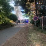 Po doplňujících telefonátech o rozsahu požáru překlasifikoval operační důstojník událost do druhého poplachového stupně a na místo vyslal ještě dobrovolné jednotky obcí Bohostice, Dolní Hbity a Kamýk nad Vltavou. Celkem tak bylo k dispozici pro zásah osm cisternových automobilových stříkaček a jeden automobilový žebřík.