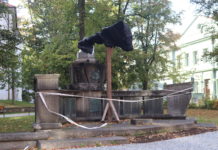 Socha u pošty sražená stromem se bude opravovat až příští rok