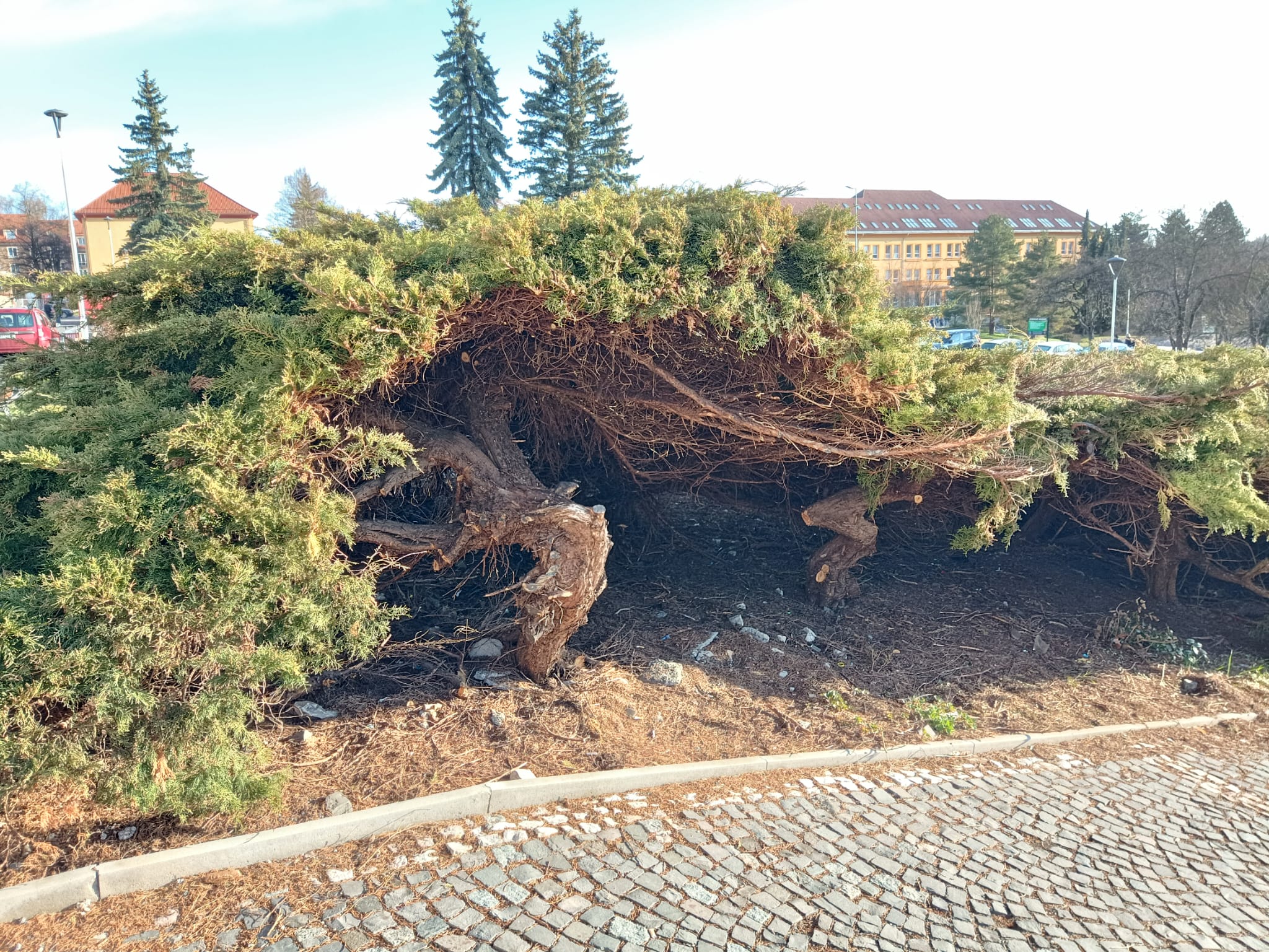 Současný stav zeleně už podle radnice neodpovídá významu místa. Jalovce se za roky rozrostly natolik, že zasahují do chodníků i prostoru laviček. Při jejich ořezu navíc vznikají suché a nevzhledné části, které celkový dojem z prostoru ještě zhoršují.
