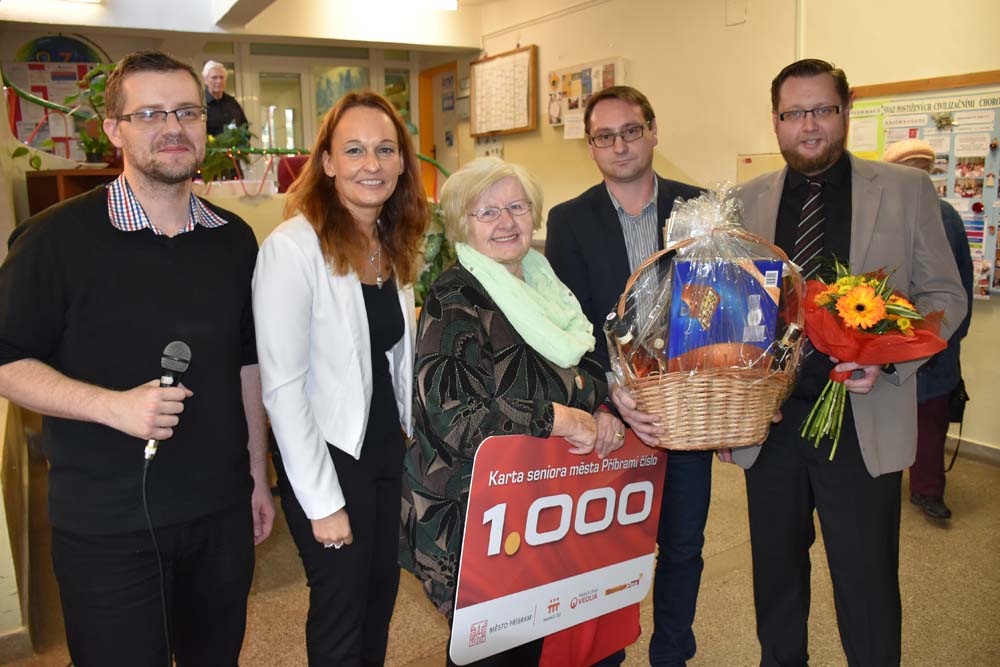 Součástí bohatého programu bylo také předání Karty seniora č. 1000, kterou obdržela paní Stanislava Dembická. „Je to pro mě překvapení, mám obrovskou radost a děkuji,“ neskrývala své nadšení čilá seniorka, která byla příjemně zaskočena nejen květinou, ale i dárkovým košem. Ke gratulacím se přidali také vedoucí Odboru sociálních věcí a zdravotnictví Robert Dikan a ředitel Centra sociálních a zdravotních služeb města Příbrami Jan Konvalinka. „Věřím, že podobných společných akcí, kde se budeme potkávat, bude i v příštím roce hodně. Začínáme už 14. ledna na Plese pro seniory,“ pozvala všechny přítomné místostarostka Ženíšková.