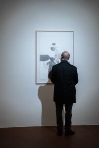 Výstava Matter of Absence pracuje s jemnými vztahy mezi přítomností a absencí, světlem a stínem, hmotou a prázdnem. Kresba se zde uvolňuje z plochy a rozvíjí se do prostoru prostřednictvím subtilních kovových linií a závěsných prvků, které vrhají proměnlivé stínové projekce. Dílo se tak nestává pouze objektem k pozorování, ale prostředím, které je možné vnímat i mentálně, jako pole neviditelných vztahů a naplněné přítomnosti.