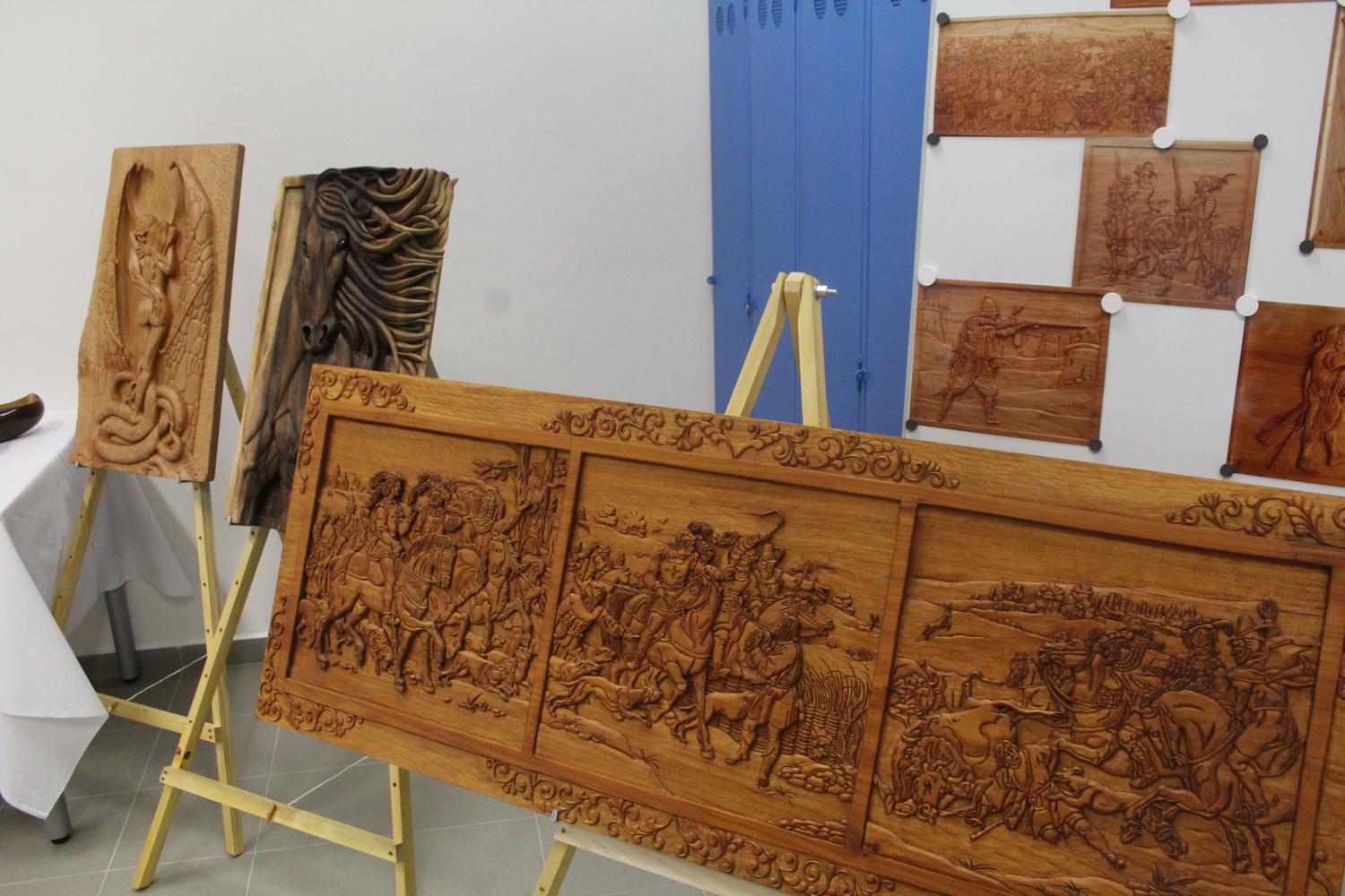 Mezi vystavenými díly byly například nepřehlénutelné výrobky ze dřeva Pavla Ulíka, který pracuje jako mistr na dílně ve výrobní hale. „K řezbařině mě přivedlo moje předchozí povolání v rámci terapie, sloužil jsem totiž jako profesionální voják na Balkáně, kdy jsem se potřeboval uvolnit od stresu a tak jsem se v roce 1998 začal zabývat řezbou,“ říká Pavel Ulík od svých výrobcích. Podle svých slov velmi často zdobí například pažby loveckých zbraní, nebo si vyřezává jen pro radost. Jeho práce byly k vidění i na letošní výstavě Nože 2018 v Příbrami.